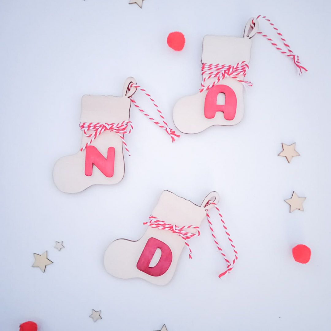 Adorno navideño realizado en contrachapado de madera y personalizado con tu inicial.