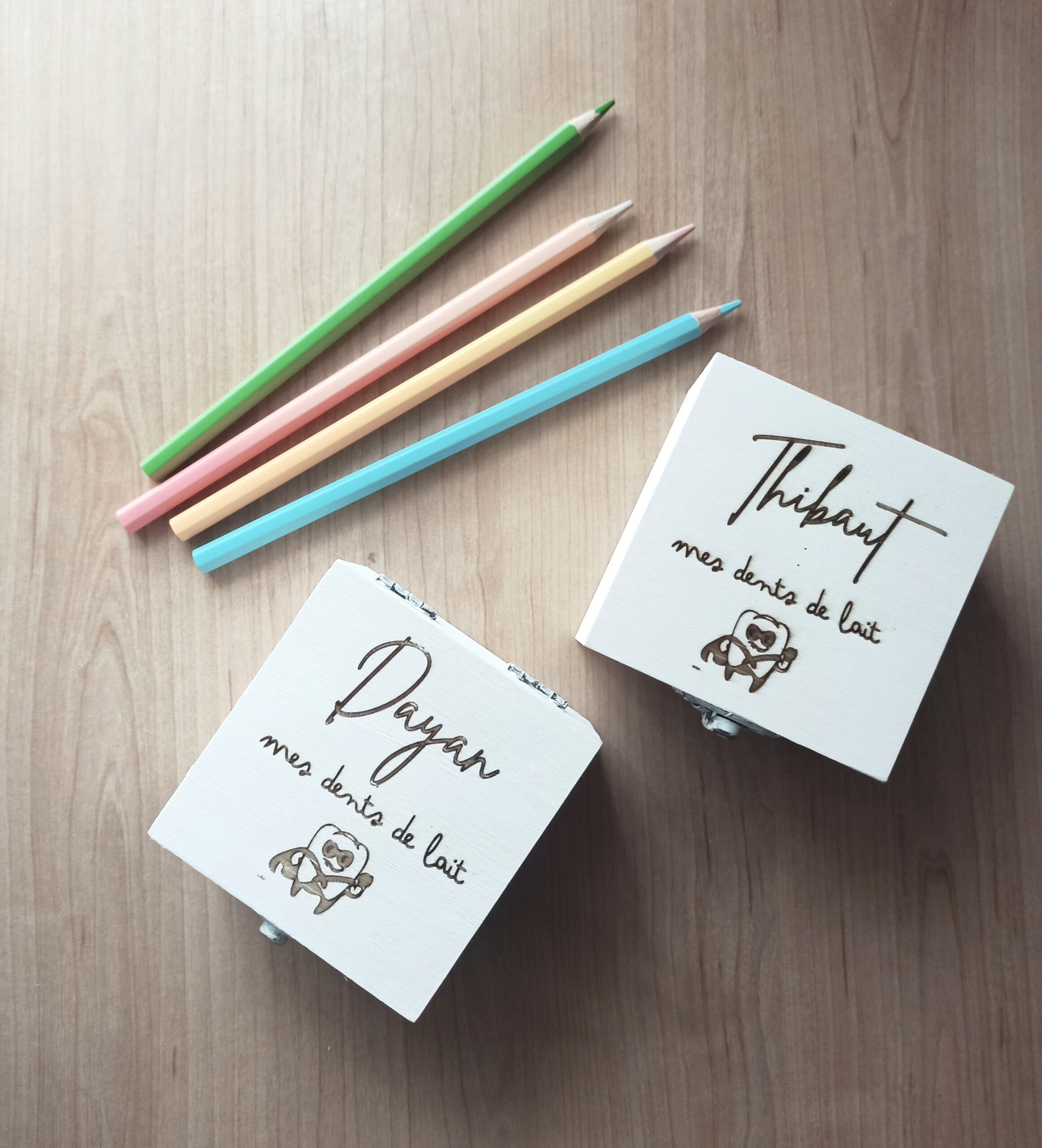 Cajita de madera en color blanco, personalizada para guardar los dientes de tu peque.
