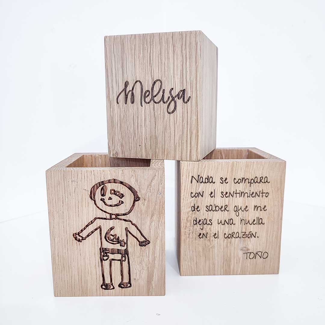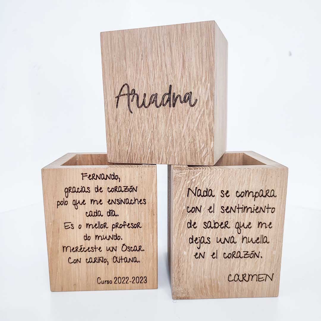 Lapicero en madera maciza de roble personalizado por ambas caras.