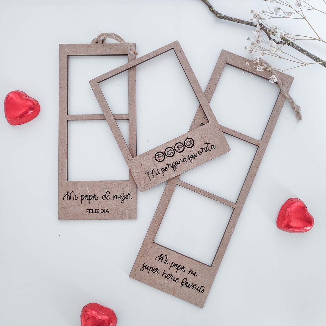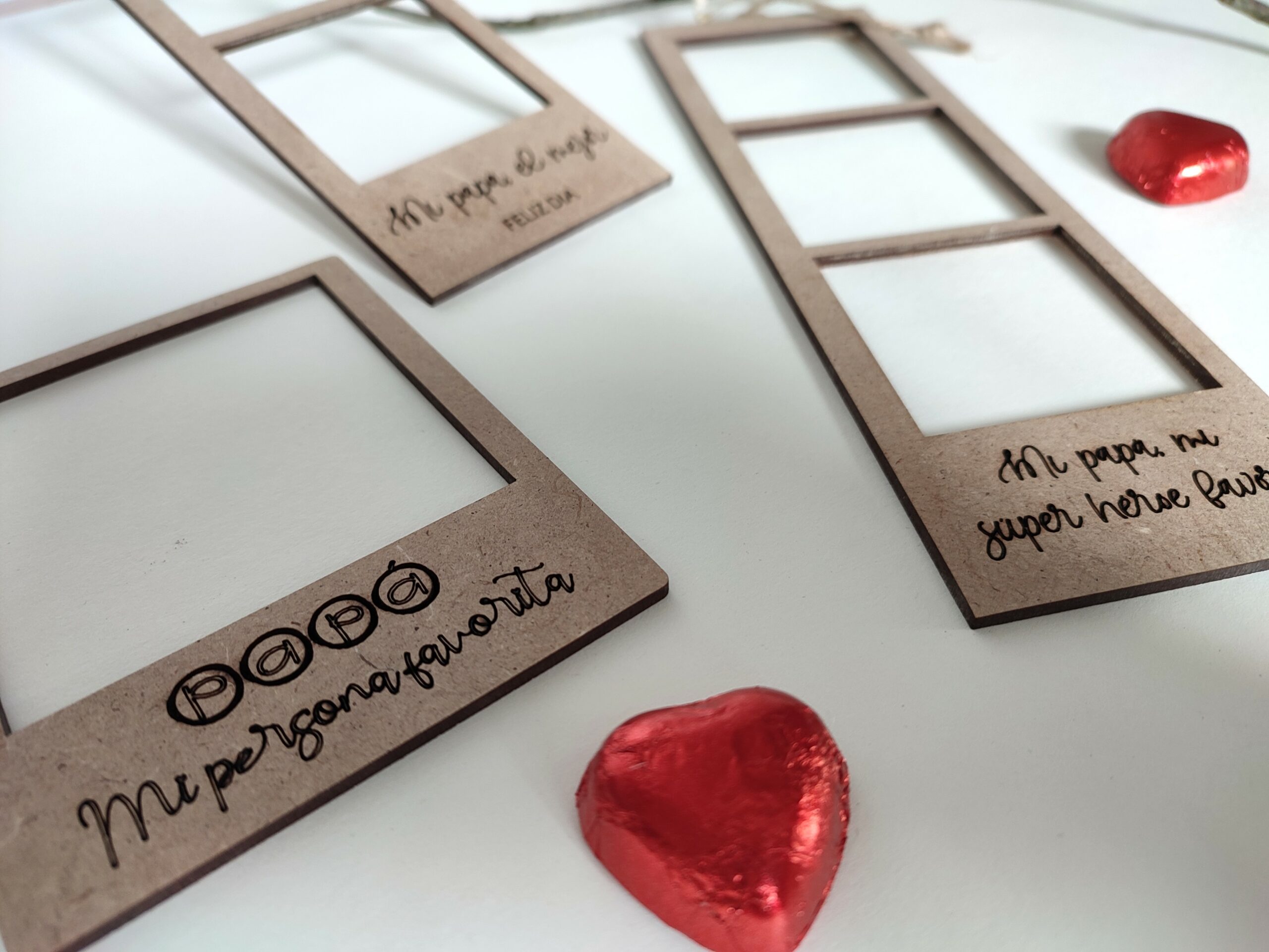 Marco de fotos realizado en MDF con dedicatoria personalizada. Si te gusta alguna de las dedicatorias que aparecen en la foto, escribe igualmente la dedicatoria en las opciones de personalización del producto.