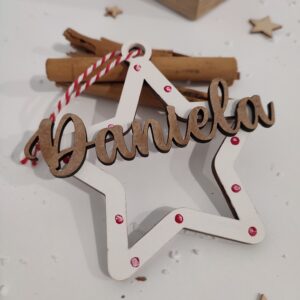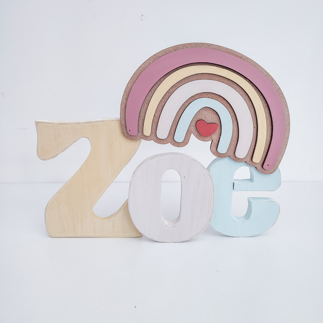 Nombre «arco iris» personalizado realizado en MDF de 16 mm de grosor.