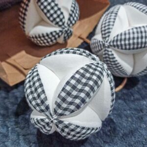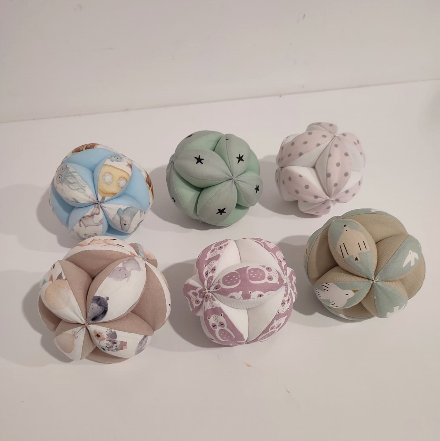 Puedes hacer tu propia combinación de colores para la luna y elegir la tela que más te guste para la pelota montessori.